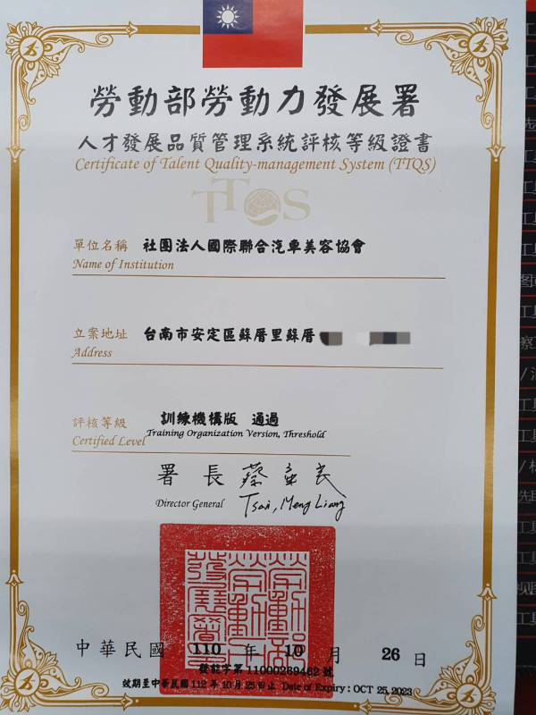 MTPS汽車美容品質管理合格(認證店)