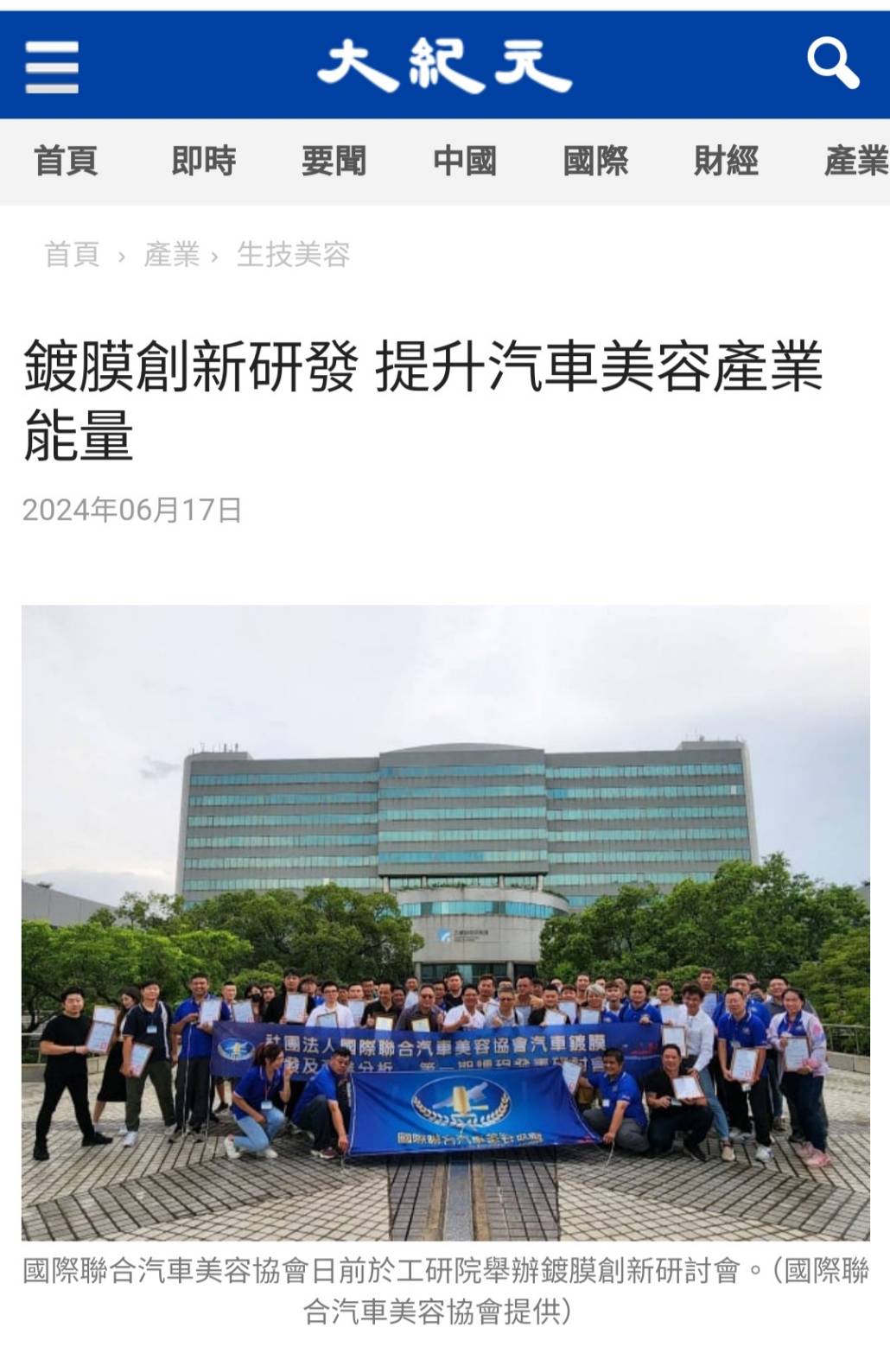 https://www.epochtimes.com.tw/n443333.html【大紀元訊】國際聯合汽車美容協會日前舉辦鍍膜創新研討會,藉由工業技術研究院的輔助,依科學依據作為佐證,由科學理論作為根基指導納入教程,輔導汽車美容經營者正確的理論與知識,提高產業的價值。